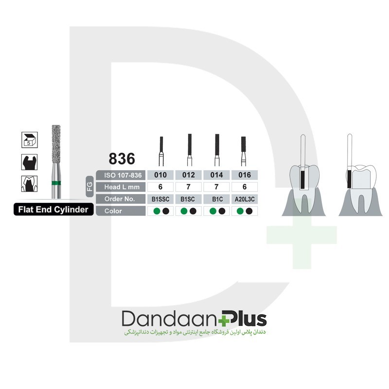 • فرز الماسه تراش (5 عددی) - Dentalree - Flat End Cylinder FG 836